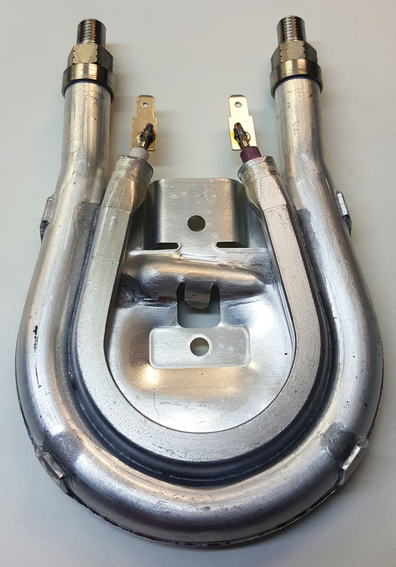Dôležité servisné informácie:Tieto ohrievače sú výrobcom testované na tlak vodou. Aby sa zabránilo korózii, je ohrievač potiahnutý suchým práškom. Biele stopy na závitu pre hadice a vnútri vodného potrubia nie sú vápenné, ale suchý prášok používaný výrobcom. Nejde o poruchu materiálu, ani o náhradný diel, ktorý už bol použitý. Tento ohrievač je nový a je dodávaný výrobcom s týmito bielymi značkami.